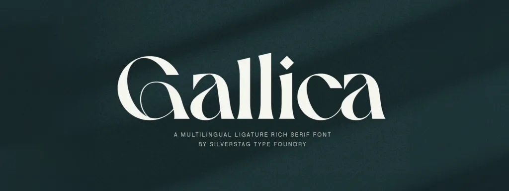Gallica de SilverStag Type Foundry est une police serif qui ne passe pas inaperçue, avec ses courbes audacieuses et son élégance incontestable. Chaque lettre est méticuleusement conçue pour combiner grâce et puissance, créant ainsi une typographie qui captive instantanément le regard. Elle est l’incarnation même de l’élégance moderne. Gallica apporte une sophistication et une classe indéniables à vos créations typographiques. Avec ses ligatures et ses formes de lettres uniques, elle offre une palette stylistique riche qui vous permet d’exprimer votre créativité avec finesse. Parfaite pour des titres percutants et du texte de corps qui respirent l’élégance. Cette police est idéale pour des projets qui exigent une présence forte et une beauté intemporelle. Utilisez-la pour des matériaux de branding qui se démarquent, des designs de site web sophistiqués, des campagnes marketing à la recherche d’une voix unique, ou des mises en page éditoriales qui aspirent à une élégance intemporelle.